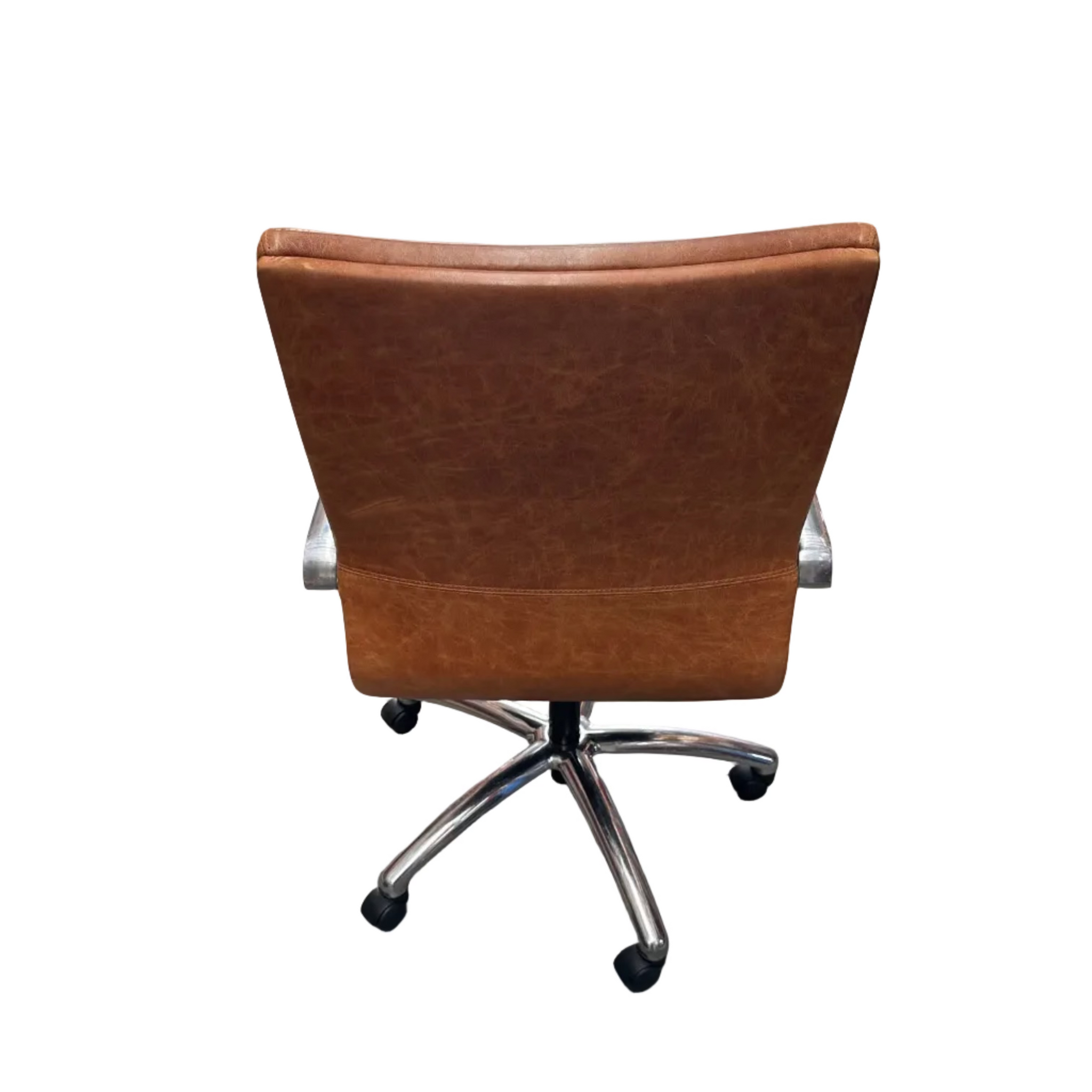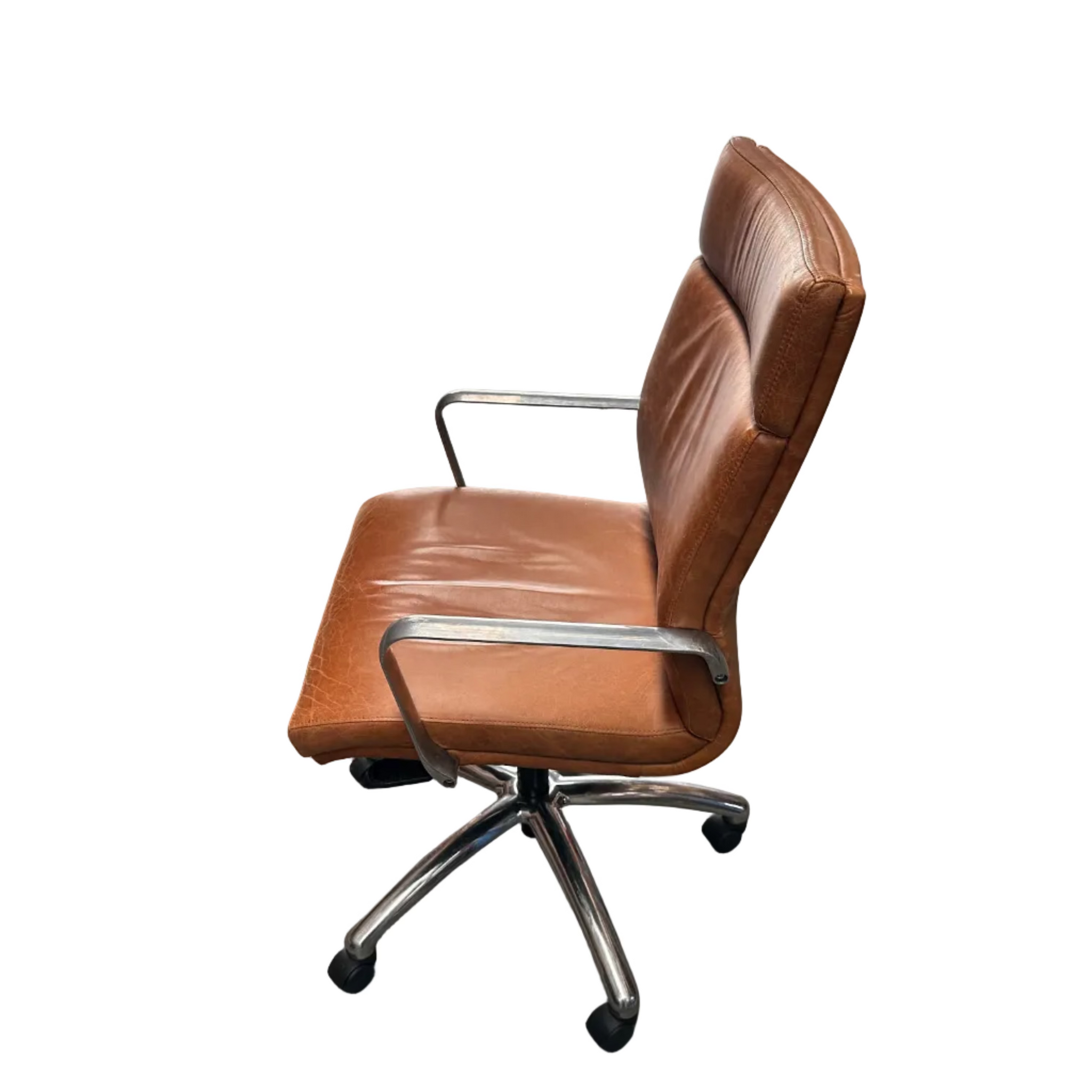Professional boardroom chair with brown leather-look upholstery and smooth-rolling wheel base. Designed for comfort during long hours at your desk, this chair combines stylish appearance with practical mobility. Perfect for creating an impressive office environment.